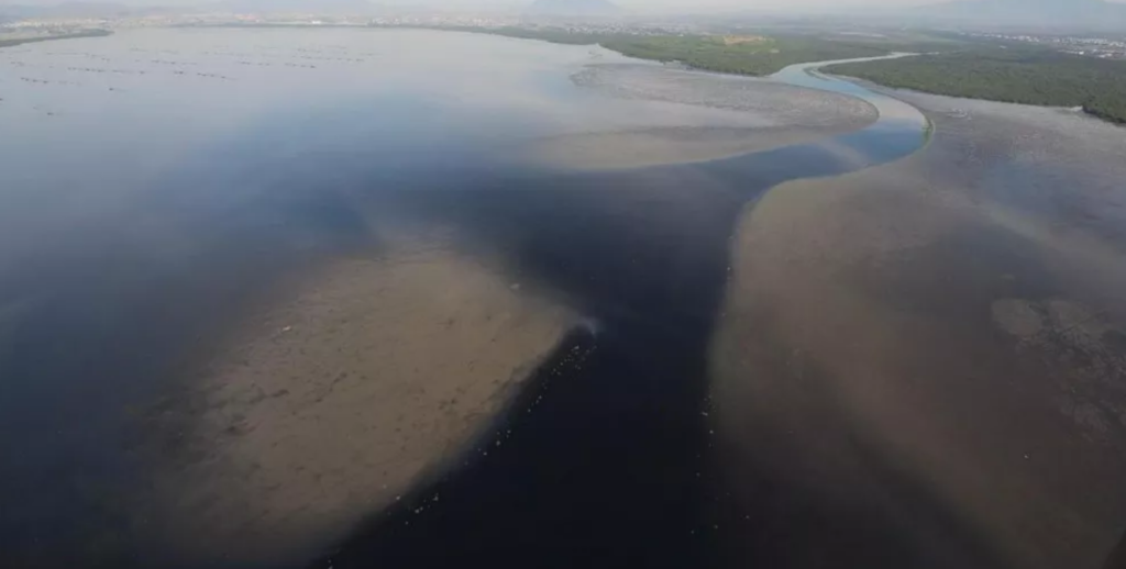 O tempo médio para a renovação de 50% das águas da Baía de Guanabara foi estimado em cerca de 12 dias, o que explica a qualidade relativamente boa da água na porção mais próxima do oceano (AMADOR, 2002 apud ALENCAR, 2016). Já na região interior, o processo de renovação é mais lento e o volume de poluentes lançados pelos rios é muito maior, resultando na má qualidade das águas. O fator que causa e agrava cada vez mais a má circulação de água na baía é pouco percebido e decorre do assoreamento que cresce silenciosamente na porção interior da Baía de Guanabara. Por não ganhar a devida atenção, este processo sufoca o espelho d’água pela má circulação e compromete a qualidade ambiental deste estuário.