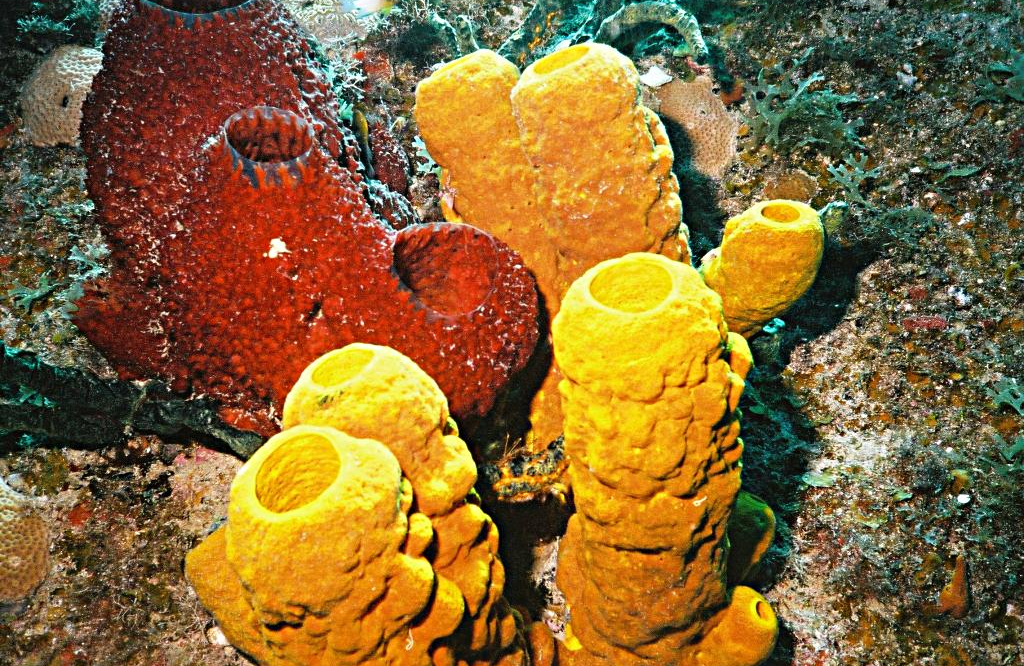 As esponjas marinhas, representantes do Filo Porifera, ocupam as mais diversas áreas do planeta, desde zonas tropicais à polares. São animais filtradores e sésseis (não possuem capacidade de locomoção) na fase adulta. São portadores de poros e podem filtrar grandes quantidades de água por seu sistema de canais aquíferos.