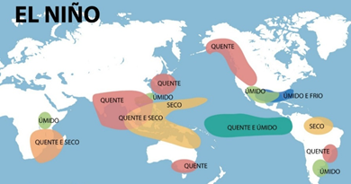 O fenômeno do El Niño que geralmente ocorre na época do Natal provoca alterações significativas na distribuição da temperatura da superfície da água do Oceano Pacífico, com grandes impactos no clima. Mas, mesmo ocorrendo no Oceano Pacífico, esse evento causa grandes alterações ao redor do planeta.