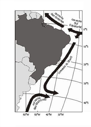 A Corrente do Brasil (CB) oriunda da bifurcação que a Corrente Equatorial forma na região, do ramo mais ao sul, origina também a Corrente do Norte do Brasil (CNB). A CB flui para Sul bordejando o litoral leste do Brasil, enquanto a CNB flui para norte, beirando o litoral. Logo, as pequenas correntes costeiras, influenciadas pelo regime dos ventos, transportam as manchas até as praias.