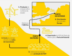 Sendo o Brasil um país tropical com boa disponibilidade de energia renovável em regiões costeiras, abre-se a possibilidade da implantação dos corredores verdes de navegação. Trata-se de novas rotas de transporte de energia limpa, envelopada em áreas costeiras brasileiras e exportada por via marítima para países do primeiro mundo que tem como principal objetivo a redução das emissões de carbono pelo homem. O Hidrogênio Verde produzido em terminais marítimos brasileiros (Porto do Açu-RJ e Pecém-CE) será exportado como combustível limpo para consumo em cidades da Europa.