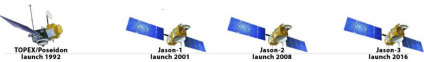 Desde 1992, cinco missões espaciais dedicacas à altimetria usaram instrumentos muito semelhantes: TOPEX/Poseidon (1992-2006), Jason-1 (2001-2013), Jason-2 (2008-2019), Jason-3 (2016 até o presente) e Jason-CS (lançado em 2020). Os satélites altimétricos foram construídos por meio de parcerias internacionais, como a Agência Espacial Americana (NASA) e a Agência Espacial Européia (ESA) entre outros.