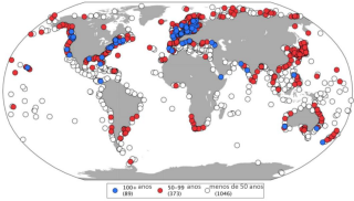 Muito antes de haver satélites, medidores de maré (marégrafos) montados em baías e portos costeiros mediam a altura do mar. Coletados em diversos lugares desde o início do século 19, esses registros forneceram uma maneira de detectar mudanças no oceano costeiro. Mas como as massas de terra e ilhas são distribuídas de forma desigual pelo mundo, e os marégrafos tendem a se agrupar nas costas dos países mais ricos, há uma certa limitação nesse tipo de medida. Ainda assim, os marégrafos fornecem uma valiosa fonte de medidas para averiguar e complementar os dados coletados pelos satélites altimétricos. O Serviço de Monitoramento do Nível Médio do Mar (PSMSL) já compilou e analisou mais de 1500 marégrafos posicionados ao redor do globo (https://www.psmsl.org/).