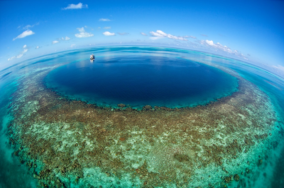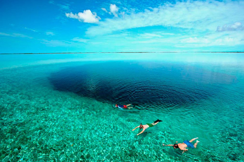 O Grande Buraco de Belize é um paraíso para os mergulhadores que podem se aproximar de tubarões e arraias sem medo de ser atacados já que a luz solar chega até 60 metros de profundidade criando um habitat rico e harmônico de águas cristalinas.
