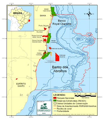 A última parada foi no Parque Nacional Marinho dos Abrolhos, onde abriga a principal formação de recifes de corais do Atlântico Sul. Durante o trajeto pudemos observar a mudança da coloração da água indo de um marrom escuro para o azul único daquela região, que é considerado o berço da baleia Jubarte, onde fazem dessa região seu refúgio de amamentação e reprodução, entre os meses de junho e novembro. Lá conhecemos o Projeto Baleia Jubarte e os projetos do Instituto Chico Mendes de Conservação da Biodiversidade, ICMBio. Nós praticamos mergulho para conhecer de perto a beleza e conservação desse paraíso natural e no final do dia, nos despedimos da Bahia com o show das exuberantes Baleias Jubartes e um lindo pôr do sol.