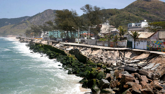 Perda da proteção da faixa de areia e avanço do mar sobre as casas, Praia da Macumba – RJ