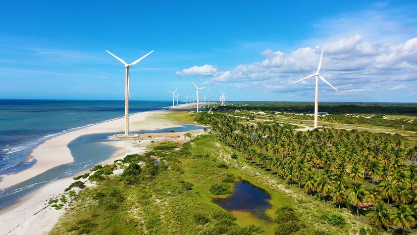 O Brasil pelo extenso litoral que possui está avançando nessa direção através da instalação de usinas eólicas no nordeste e no sul, além de usinas solares no norte, nordeste e sudeste brasileiro. O país por estar localizado na região tropical possui um enorme potencial eólico e solar pela própria natureza. Nos últimos 15 anos o Brasil conseguiu incorporar mais de 10% de energia eólica na sua matriz energética produzida. Além disso, estamos nos preparando para incorporar os Corredores Verdes de Navegação definidos na COP26 com os portos do Açu (RJ) e de Pecém (CE). Esses terminais estão se preparando para a instalação de polos para produção do Hidrogênio Verde. Através da abundância de energia eólica e do etanol pretende-se “engarrafar” essa energia na produção do Hidrogênio Verde e exportar pelas rotas verdes de navegação para a Europa e EUA. Nesse sentido, percebe-se a importância e o potencial do desenvolvimento da economia azul no litoral brasileiro.