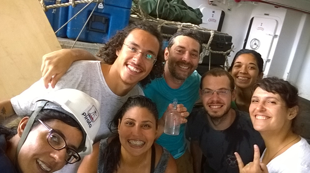 E mais que ficar na bancada, eu gosto mesmo é de trabalhar embarcada. Poucas coisas me deixam tão feliz! Não é fácil. É bem duro para falar a verdade, pouco espaço, pouco descanso, pouca estabilidade (real boats rock!), longe de casa, muita responsabilidade com o trabalho e segurança, mas também muito gratificante ver o quanto os alunos aprendem e apreciam a experiência a bordo. Depois que ingressei na UERJ tive oportunidades fantásticas, e não sei se as teria em outra instituição. É também um dos resultados do trabalho de equipe, como falei acima.