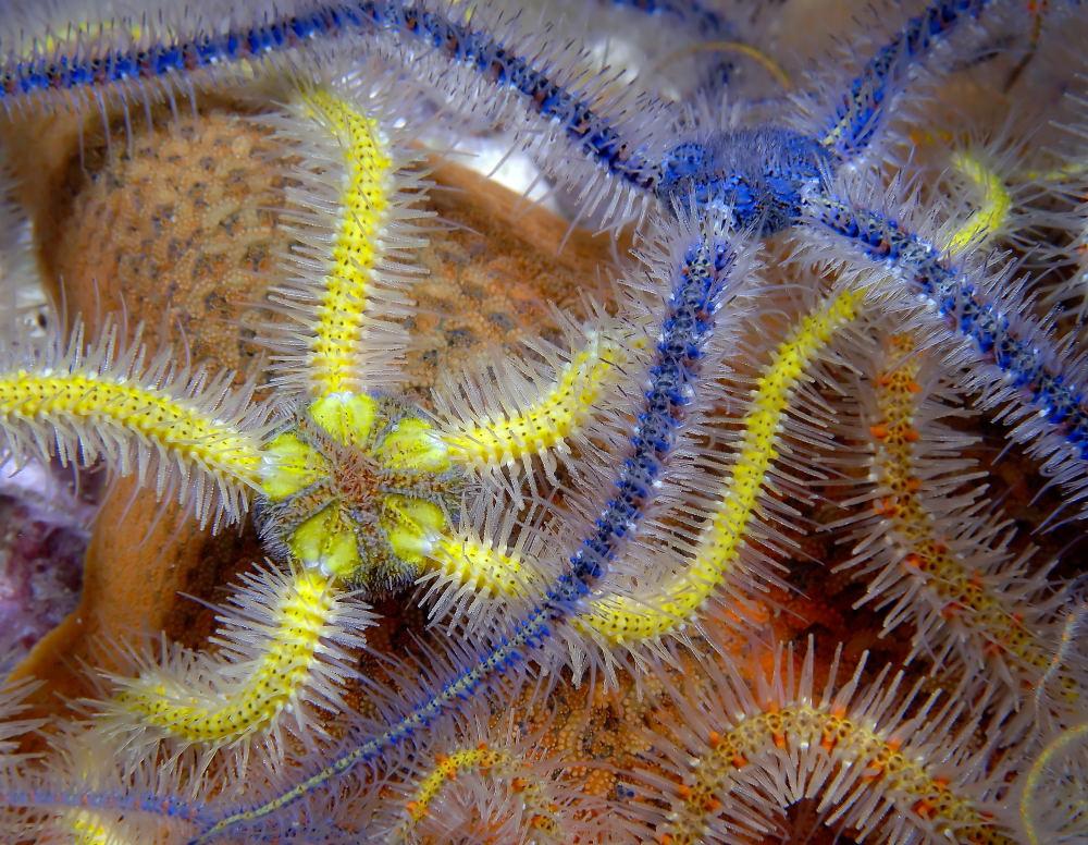 Em contrapartida, alguns grupos de equinodermos não são tão populares, embora também apresentem uma grande diversidade de formas. Os Ophiuroidea, por exemplo, são representados pelas serpentes-do-mar. Esses animais se assemelham a estrelas-do-mar, porém apresentam braços mais longos, que são utilizados para captura de alimento em suspensão. A classe Crinoidea compreende os lírios-do-mar e penas-do-mar. Em sua maioria, são animais com capacidade de rastejar ou até mesmo nadar e também se alimentam de partículas em suspensão.